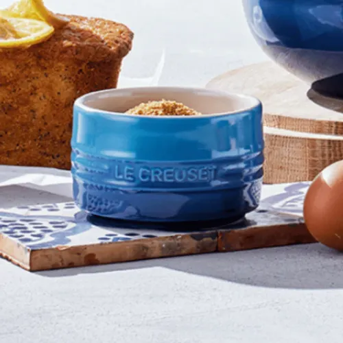 Crème brûlée needs ramekins that conduct heat evenly for baking and retain the cold well once chilled, keeping the custard firm whilst the caramel is torched on top. I use the Le Creuset ramekins for this crème brûlée recipe. The stoneware distributes heat gently and uniformly during the water bath bake, which gives you a consistent set across the entire surface of each custard. The depth is right for the classic shallow crème brûlée format, which gives you more caramel surface area relative to custard depth. And they go straight from oven to fridge to table without a second thought.