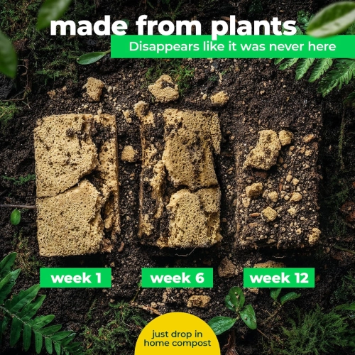 Most kitchen sponges are plastic. They don’t break down, they shed microplastics when you use them, and you’re meant to replace them a lot as they break down quite easily.