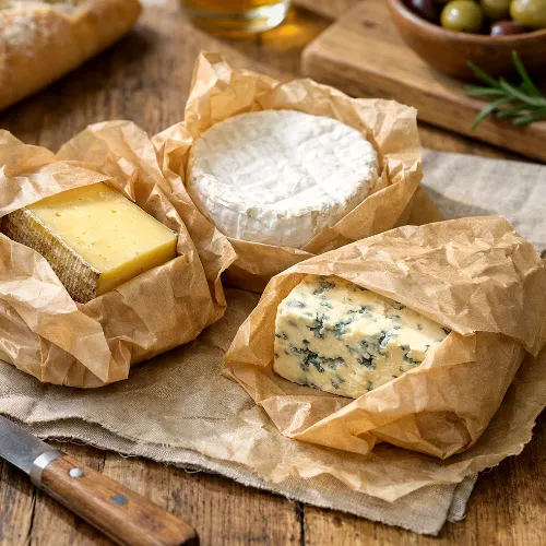 Cheese needs to breathe. Store it in a plastic container and it sweats, develops off flavours, and makes the container permanently smell like old cheese no matter how many times you wash it. Cling film is even worse, it traps moisture against the cheese and you end up with slimy surfaces and wasted cheese. Parchment paper is the only way to store cheeses as it lets them breathe whilst protecting it from drying out too quickly.