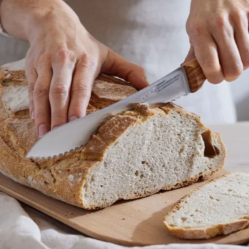 A good bread knife makes that cut clean and consistent. I use the Opinel bread knife for this. The serrated blade cuts through a crusty loaf without compressing the crumb or tearing the crust, which matters when you want clean, even slices. Opinel knives are made in the Savoie region of France and have been part of French kitchen culture for generations. For a recipe this simple, having the right knife is genuinely part of getting it right.