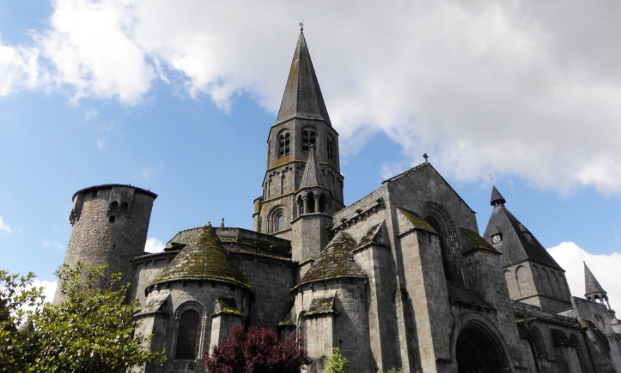 The Collegiate Church of Saint-Pierre perfectly captures the town’s spirit. Built in the 12th and 13th centuries, it showcases classic Romanesque architecture made of local grey granite. The the church’s architecture is heavily inspired by regional giants like the Abbey of Saint-Martial in Limoges and Saint-Junien’s collegiate church. It features a cross-shaped floor plan, with chapels fanning out behind the altar. Its octagonal bell tower holds the town’s mascot, the golden angel.