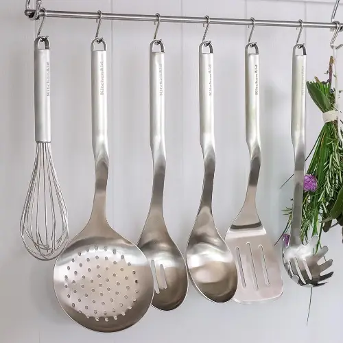 For lifting the eggs out cleanly without breaking the yolk, a proper slotted spoon is essential. The KitchenAid slotted spoon is the one I reach for every time. The shape cradles the egg perfectly and lets the wine drain off before it goes into the bowl. Worth having in the kitchen for this alone.