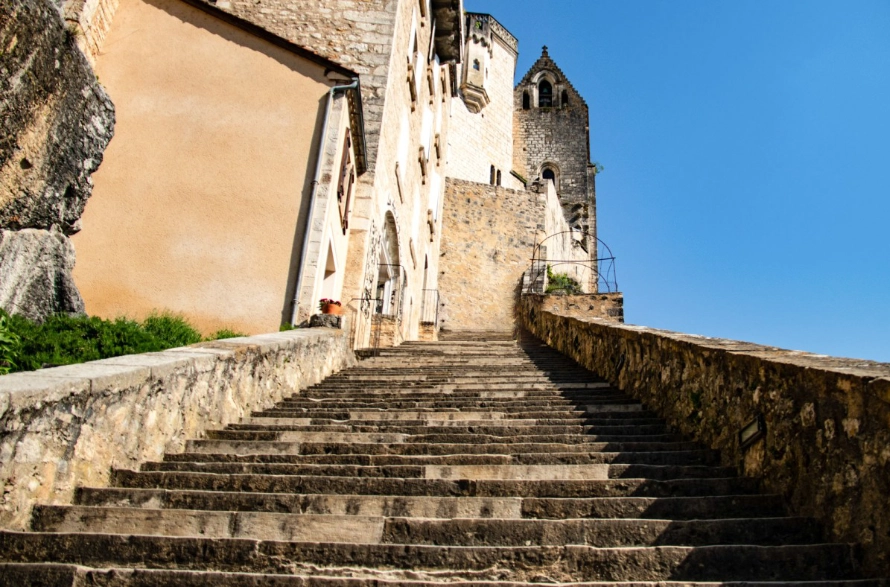 Le Grand Escalier, or the Big Stairs, is a rite of passage from the village to the sanctuary. There are precisely 216 steep stone steps, enough to test your legs and lungs. Pilgrims crawled up these on their knees as a sign of devotion, which puts (my) modern walkers’ legs to shame. The climb might leave you puffing, but the views are worth every step, Rocamadour peeling away behind you and the valley stretching out below. If you’d rather save your energy, lifts and a tourist train are on hand, but climbing the stairs yourself gives a proper sense of what this place is about.
